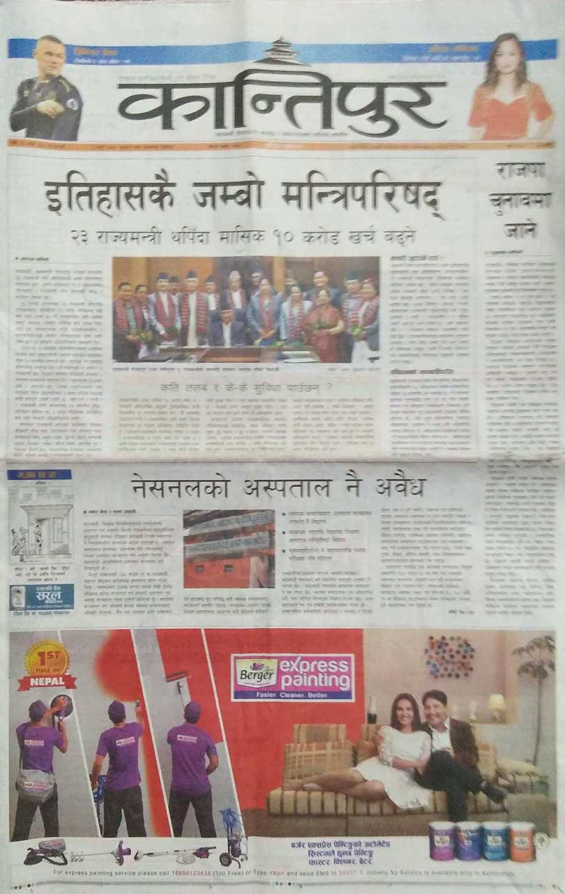 कान्तिपुर दैनिकले देउवाको मन्त्रिपरिषद् इतिहासकै जम्बो भएको लेखेको छ भने अन्नपूर्ण पोस्ट दैनिकले पञ्चेश्वर असफल भएको लेखेको छ ।
