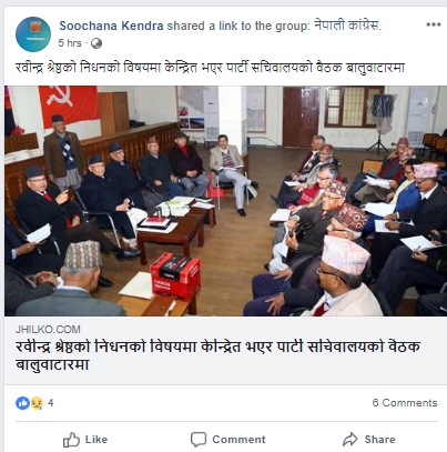 त्यसैगरी मृतकका तस्विरसहित श्रद्धाञ्जली व्यक्त गर्दै पोष्ट गरिएका तस्विरमा लाइक गर्नेहरुको संख्या धेरै देखियो । लाइकको अर्थ मन पर्यो भन्ने हुन्छ । तस्विर देख्नासाथ लाइक गर्ने बानी परेकाहरुले श्रद्धाञ्जलीका लागि हालिएको तस्विरमा स्याड संकेत थिच्ने मेसो नै पाएनन् ।